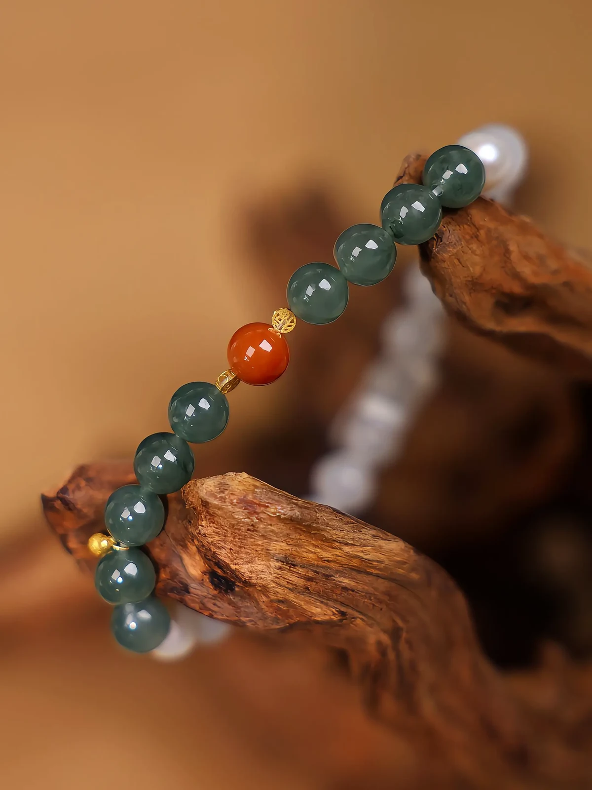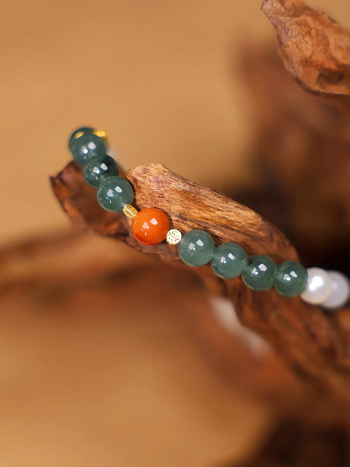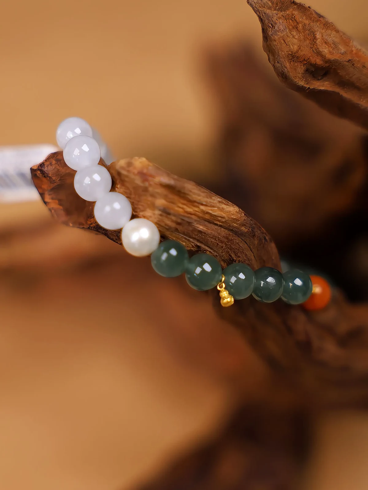 Each bead is made from authentic natural jadeite, delicately hand-polished to preserve its soft glow and soothing texture. The gentle green hues of jade reflect the stillness of nature — calm, pure, and endlessly renewing.