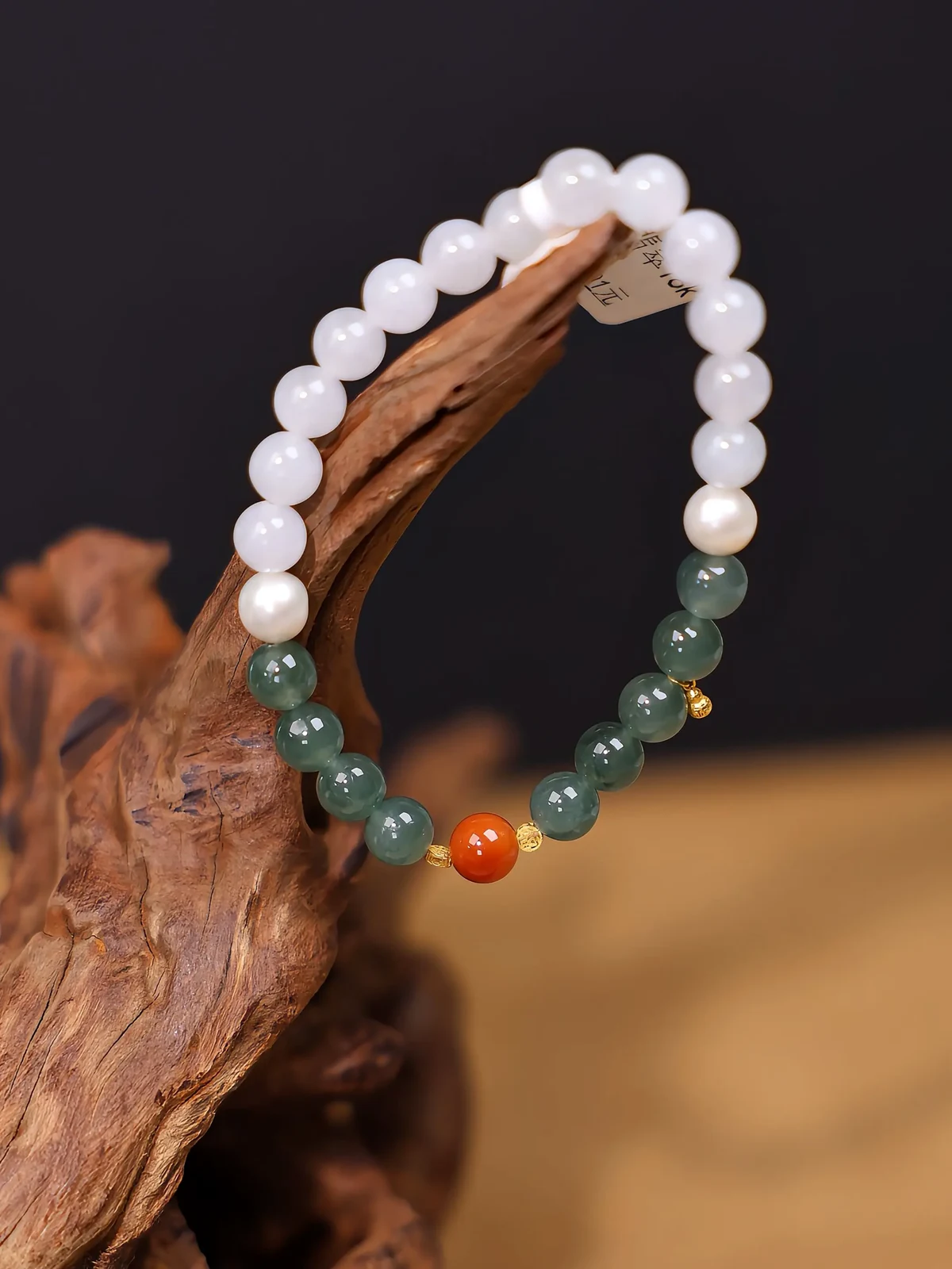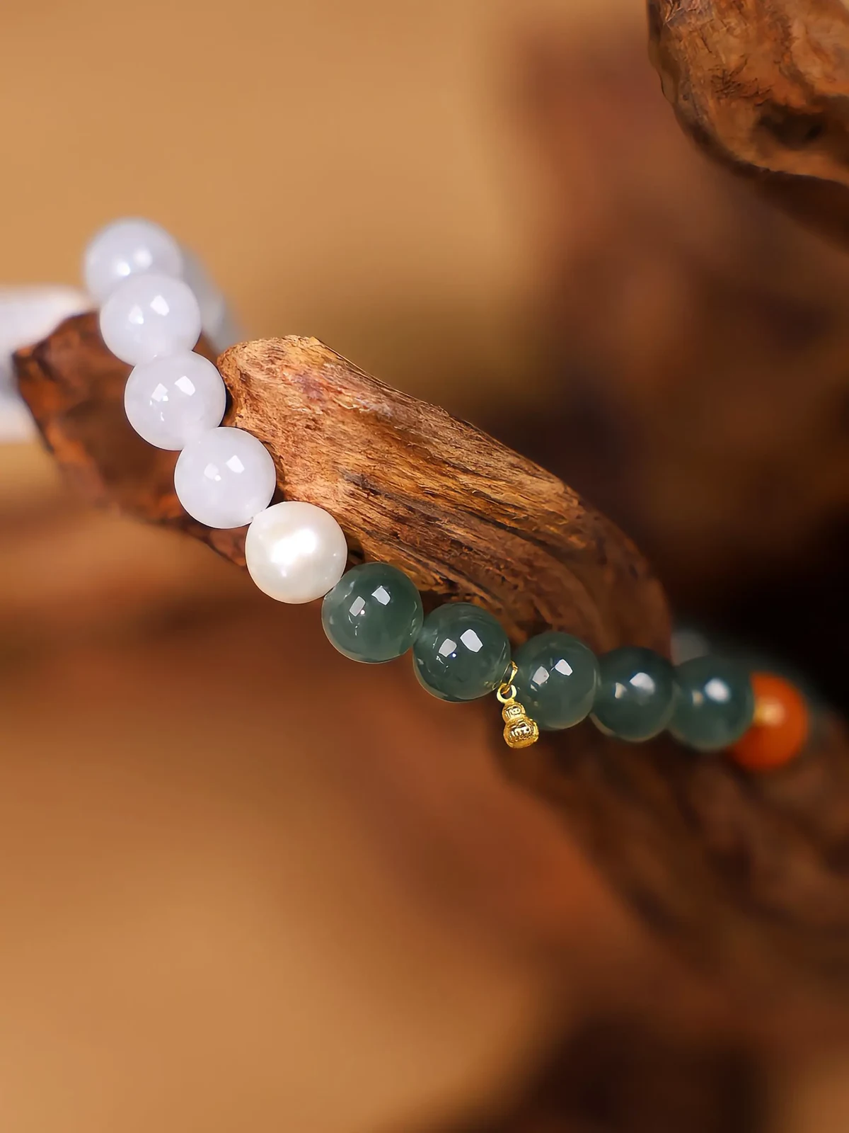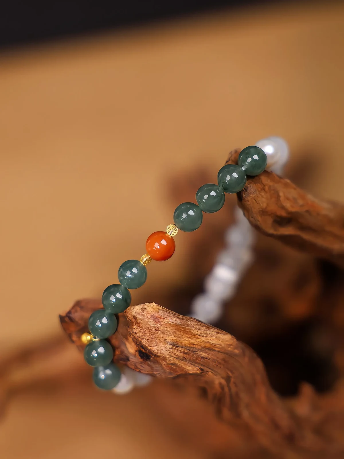 Each bead is made from authentic natural jadeite, delicately hand-polished to preserve its soft glow and soothing texture. The gentle green hues of jade reflect the stillness of nature — calm, pure, and endlessly renewing.